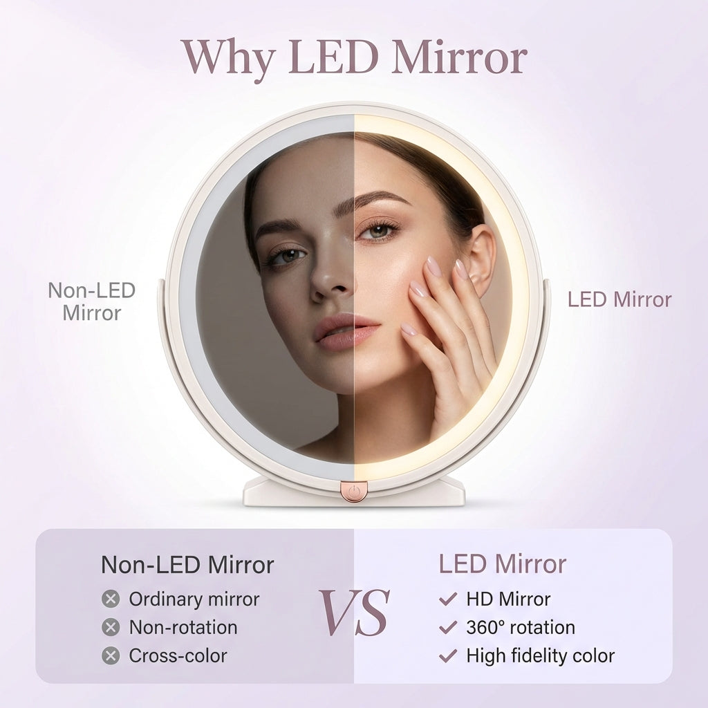You’ll never worry about poor lighting again! Whether you're at home, at work, or on the go, the adjustable LED light ensures you always have the perfect illumination for makeup or quick touch-ups. No more squinting or uneven application!
